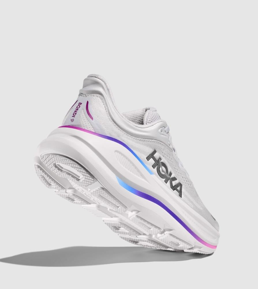 - حذاء هوكا بوندي ابيض يتميز بنعل أوسط صنع من الفوم المتطور وذلك لضمان أقوى امتصاص للصدمات.